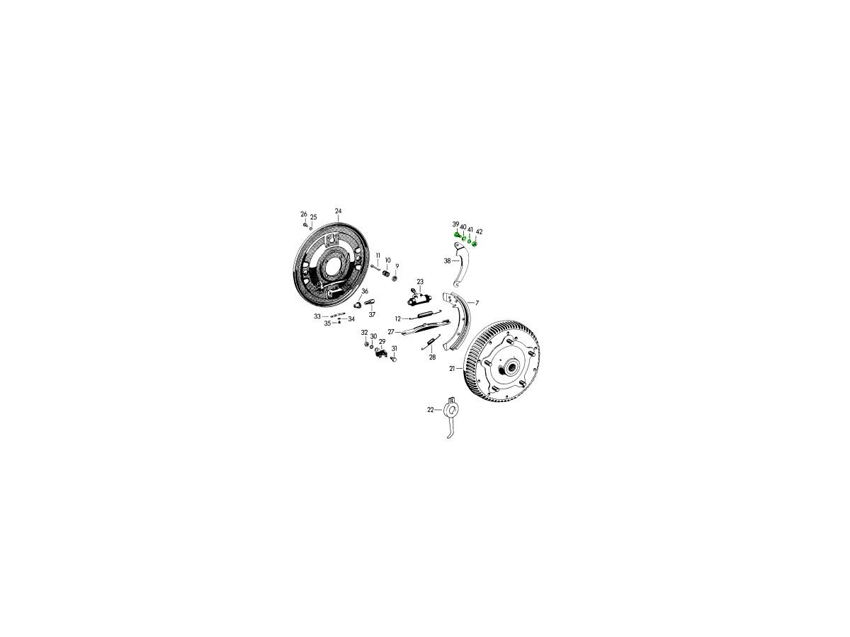 Questo è il perno del cuscinetto, noto anche come bullone della leva del tamburo del freno, ed è completo di rondella ondulata, rondella spaccata e dado.