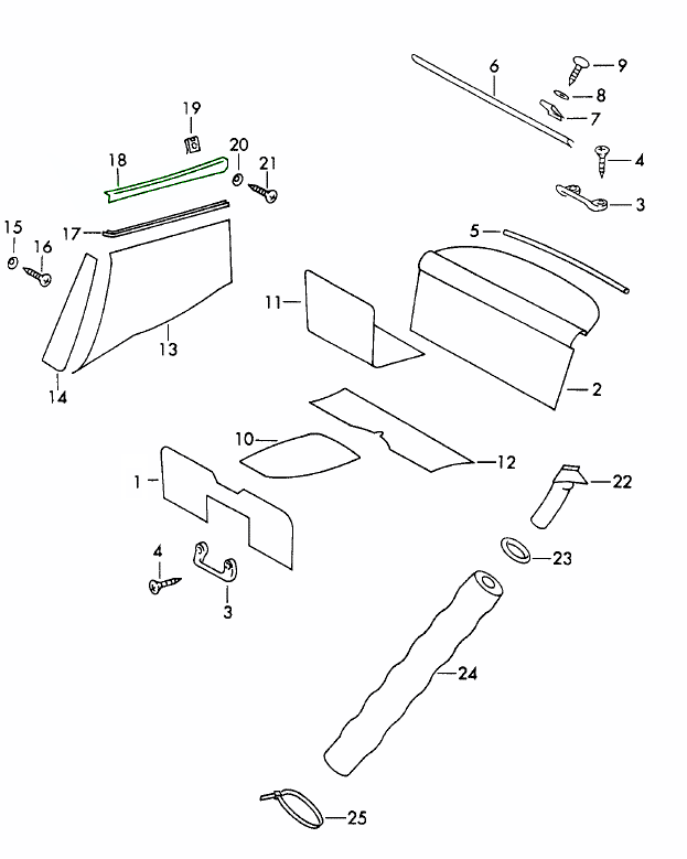 Copri bagagliaio per modelli Porsche 911 Targa "Soft window" 1967-1968. Si tratta di uno splendido copribagagliaio con specifiche OEM adatto per auto originariamente dotate di finestrino morbido o conversioni.