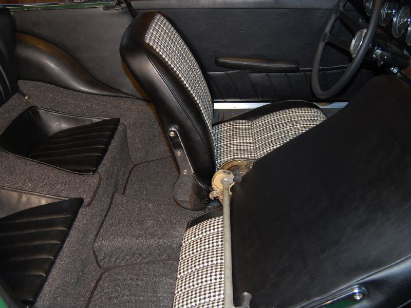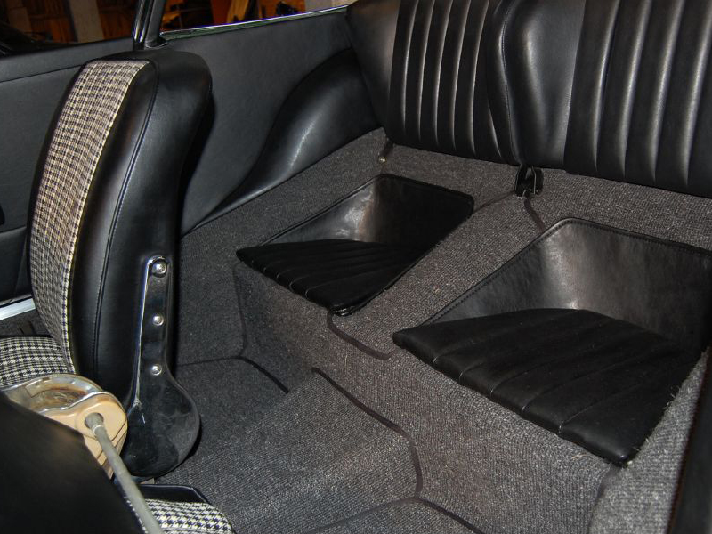 Questo è per un'auto con sedili standard con centri Pepita Black/White, moquette in velluto haargarn "pepe e sale" e bordi della base dei sedili posteriori e tasche delle portiere in 2 pezzi come originali per il '65