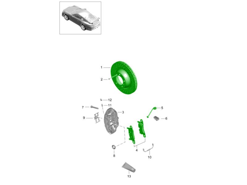 Rinnova l'impianto frenante anteriore della tua Porsche 911 (generazione 992) dotata di freni standard con rotore in acciaio (equipaggiamento Comfort).