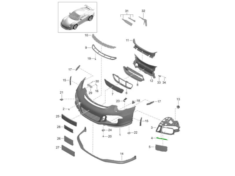 Kit adattatore B con spoiler 991.1 spoiler a 997.2 con altezza da terra di 130-140 mm. Porsche 997.2 ❭ 99150552501