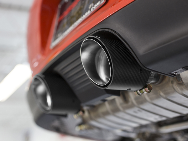 Terminale di scarico in acciaio inox cromato a sezione ellittica maggiorata.