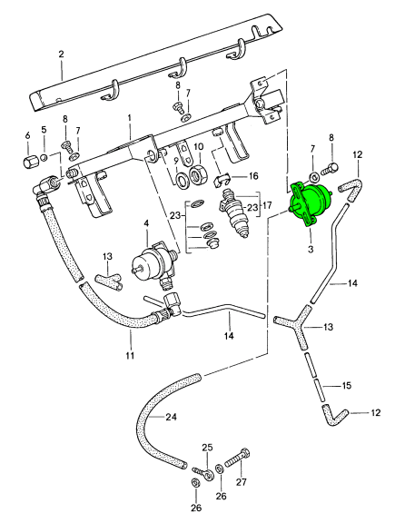 Hai problemi ad avviare la tua 911 quando è fredda? Potrebbe essere il regolatore di riscaldamento situato sul lato superiore sinistro del motore. Questo semplice dispositivo è responsabile del controllo della quantità di carburante erogata al motore durante il periodo di riscaldamento. La pressione che agisce sulla parte superiore dello stantuffo di controllo varia a seconda della temperatura del motore e fornisce un metodo efficace di arricchimento. La pressione di controllo viene prelevata dal circuito di pressione primaria nella camera inferiore della testa di dosaggio attraverso un piccolo foro restrittivo che le consente di differenziare tra le due pressioni. Un tubo flessibile collega quindi la galleria dello stantuffo di controllo al regolatore di riscaldamento e torna alla testa di dosaggio a una connessione accanto alla valvola di trasferimento del regolatore di pressione primaria. Questa valvola è nel circuito per chiudere il carburante dal circuito di controllo quando il motore è spento, evitando la perdita totale di pressione del sistema mentre il motore è fermo.