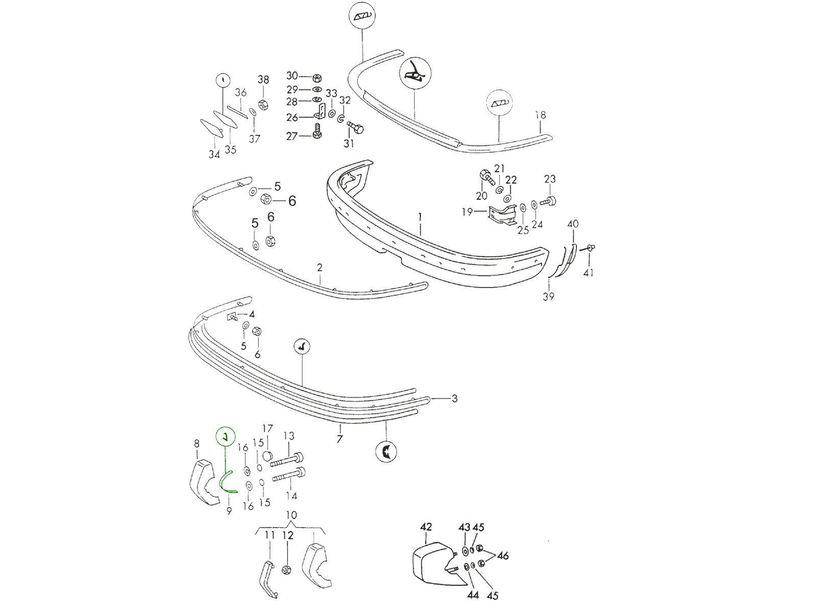 Mantieni la precisione e la finitura di fabbrica della tua Porsche con le guarnizioni per paraurti di Design911. Queste guarnizioni e guarnizioni in gomma essenziali si inseriscono tra il paraurti e i pannelli della carrozzeria, creando una tenuta stagna che previene i danni causati da acqua, sporco e vibrazioni. Progettate secondo le specifiche OEM, le guarnizioni per paraurti garantiscono un allineamento perfetto e riducono i rumori, preservando al contempo la vernice e l'aerodinamica della tua Porsche. Che tu stia restaurando una 911 classica, sostituendo le guarnizioni usurate di una Boxster o effettuando la manutenzione di una Taycan, Design911 offre una gamma completa di guarnizioni per paraurti anteriori e posteriori per mantenere la tua Porsche in perfette condizioni e protetta dagli agenti atmosferici.