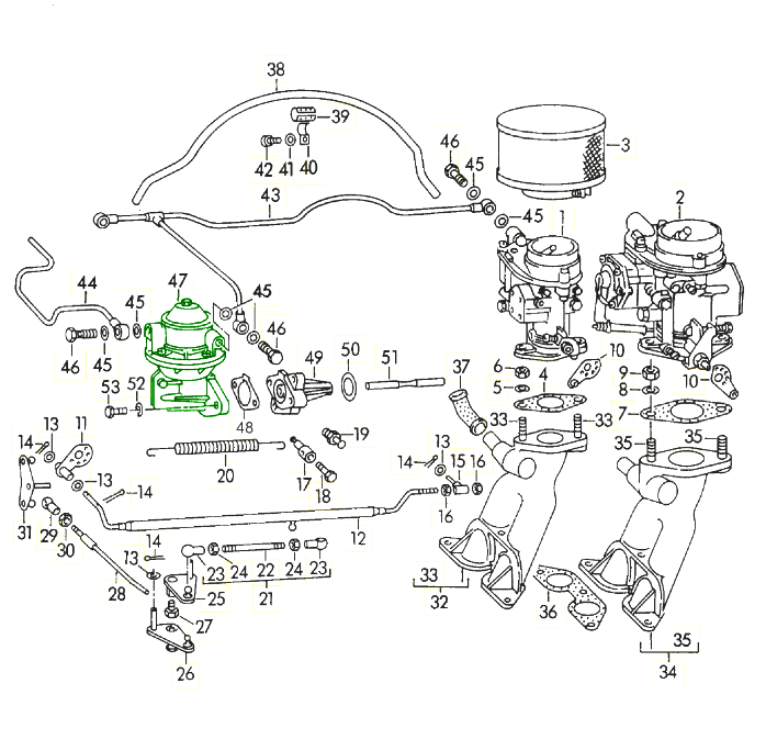 Parti singole per pompa carburante (modello: 1600, 1600 S, 1600 S90) 356B 1960-1965 107-020