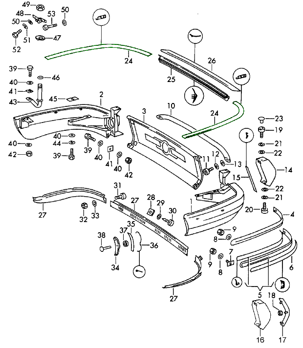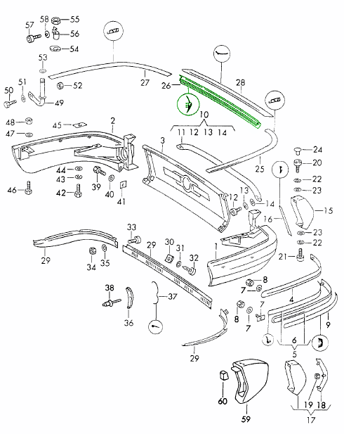 Kit completi di guarnizioni per paraurti posteriori contenenti tutte le modanature, le guarnizioni e l'hardware di montaggio necessari per una facile sostituzione o un restauro completo.
