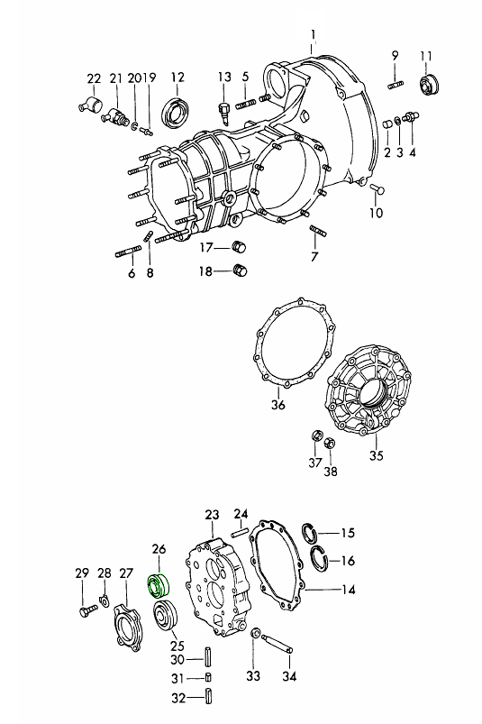transmission case sportomatic for 911 T/E UPTO 1971 307-00