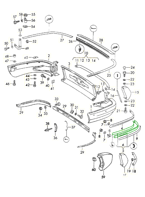 Finiture di finitura OEM e riproduzioni per il bordo del paraurti posteriore, che completano la linea della carrozzeria e preservano lo stile originale della tua Porsche.