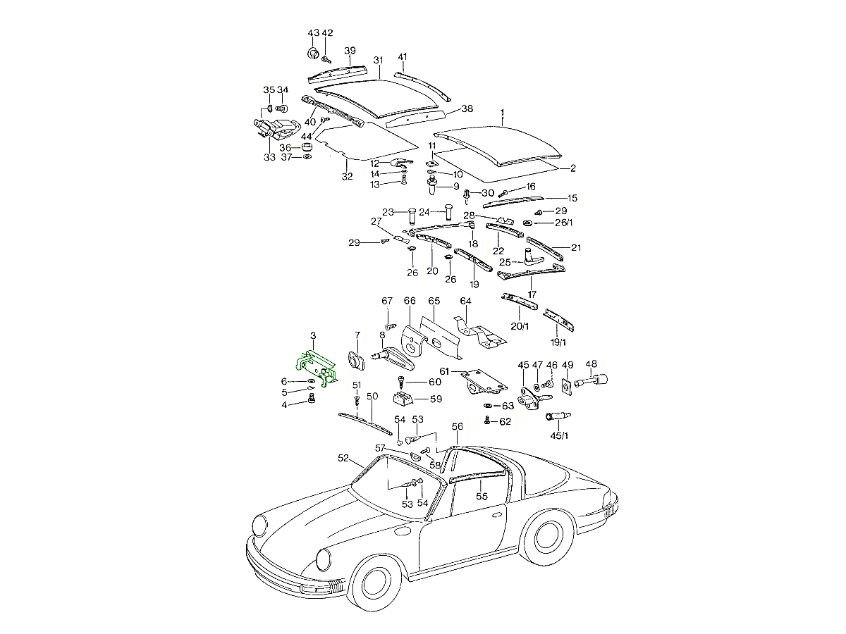La nostra collezione comprende pannelli del tetto rimovibili, chiusure, guarnizioni e rivestimenti del padiglione realizzati secondo le specifiche OEM, garantendo un allineamento perfetto e un isolamento acustico per la tua Porsche Targa classica o moderna.