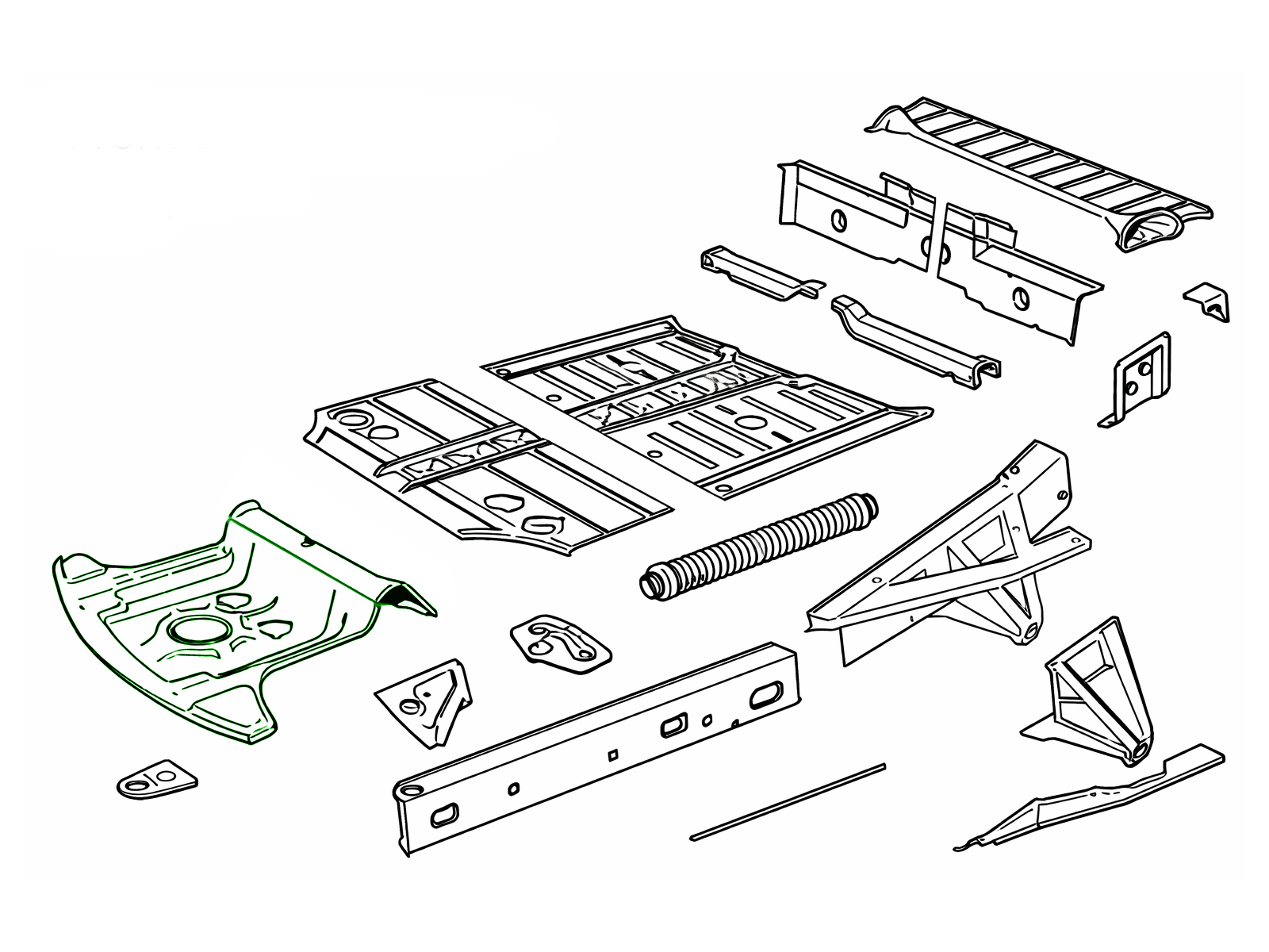 Riproduzione accurata delle paratie e dei pannelli del pavimento anteriori, progettati per durare a lungo e in linea con l'ingegneria originale Porsche.