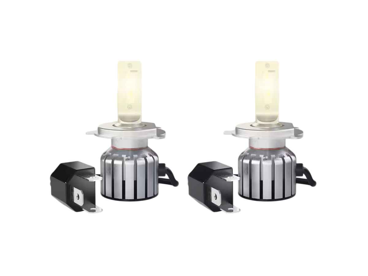 Il set di lampade LED retrofit LEDriving HL Vintage offre un moderno upgrade dell'illuminazione a LED, progettato specificamente per veicoli d'epoca e fari dal design più datato. Queste lampadine LED ad alte prestazioni sostituiscono le tradizionali lampade alogene H4, R2 e H19, mantenendo il caldo aspetto vintage tipico delle auto d'epoca.