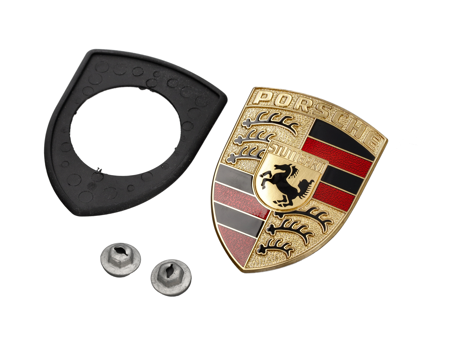 Gli stemmi sul cofano servono sia come emblemi di identificazione decorativi che funzionali per la parte anteriore esterna della tua Porsche.