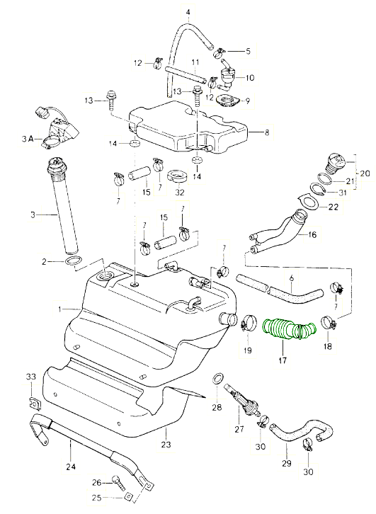 Il serbatoio del carburante della tua Porsche è il fondamento del suo sistema di alimentazione, immagazzinando e fornendo benzina al motore in modo sicuro. Insieme a componenti essenziali come fascette, guarnizioni, raccordi, filtri e valvole di sfiato, il serbatoio del carburante garantisce un flusso efficiente, stabilità della pressione e sicurezza in ogni condizione di guida.