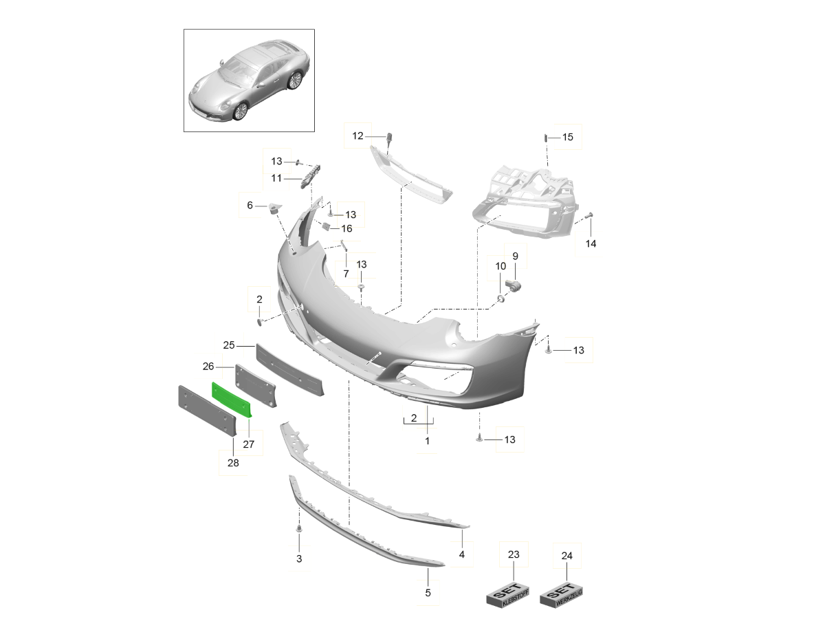 Garantisci un montaggio perfetto e un look pulito e di fabbrica con i porta targa per paraurti anteriore di Design911. Queste staffe e cornici sono progettate per montare saldamente la targa anteriore della tua Porsche, mantenendo al contempo l'efficienza aerodinamica e l'equilibrio estetico. Prodotto secondo le specifiche OEM, ogni supporto si allinea perfettamente al design del paraurti della tua Porsche, prevenendo vibrazioni, disallineamenti o danni alla vernice. Disponibili sia per i modelli Porsche classici che per quelli moderni, i nostri porta targa combinano durata e integrità del design, garantendo che la targa rimanga saldamente in posizione preservando al contempo l'inconfondibile stile Porsche.