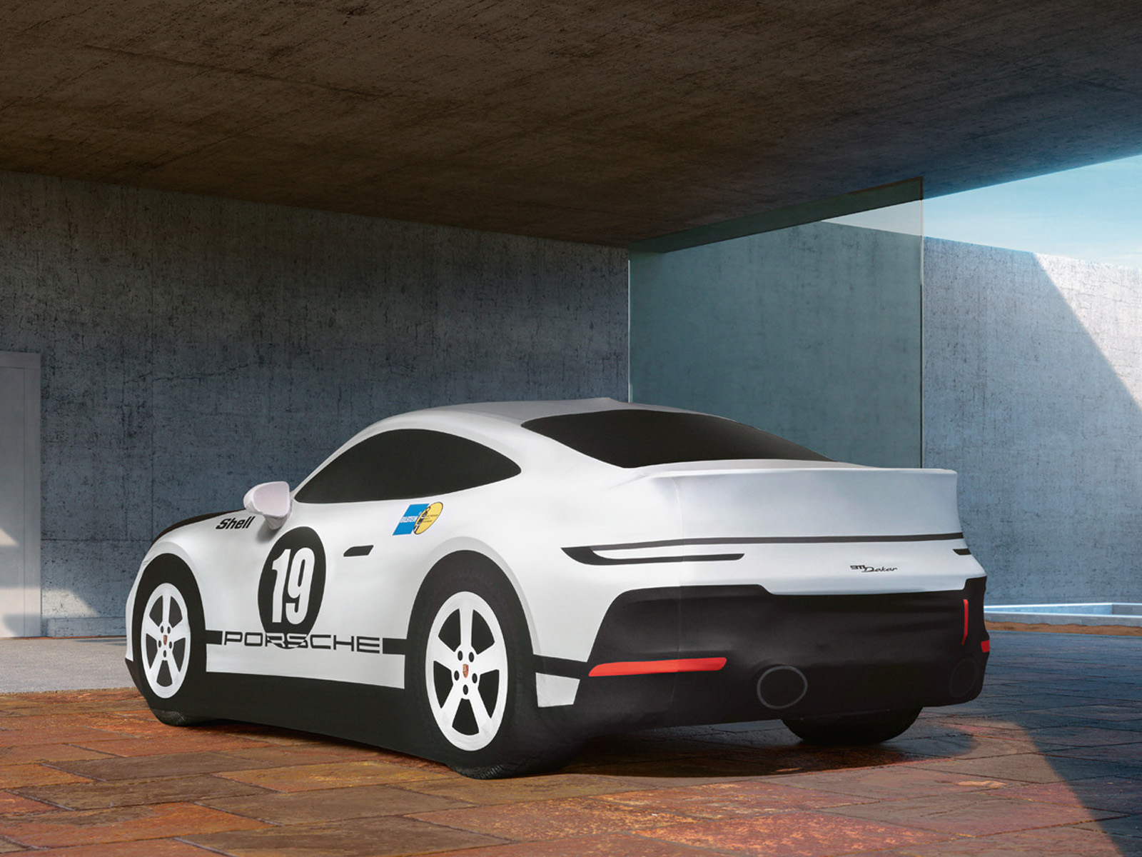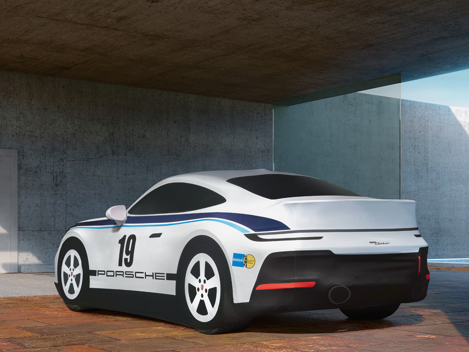 Caratteristiche strisce blu chiaro e scuro su vernice bianca. Il caratteristico numero iniziale 19 sulle porte. Il telo copriveicolo per interni su misura, realizzato in materiale traspirante, antistatico e repellente allo sporco, rende chiaramente omaggio allo sport dei rally. Nello specifico, la Porsche 911 Carrera RS 2.7 nell'inconfondibile design Kühne + Nagel®, con la quale Porsche gareggiò nell'East African Safari Rally del 1974. In uno dei rally più duri del mondo, le squadre devono dimostrare le proprie abilità in situazioni eccezionali. Quasi 5.000 chilometri nelle condizioni più difficili del deserto del Kenya spingono al limite anche i professionisti più esperti del rally. Così come hanno fatto Björn Waldegård e Hans Thorszelius che, nonostante le forti piogge e le inondazioni, hanno vinto la 22esima edizione della Coppa del Mondo. Nell'edizione di questa corsa nel deserto, la loro Porsche con il numero 19 ha tagliato il traguardo al secondo posto.
