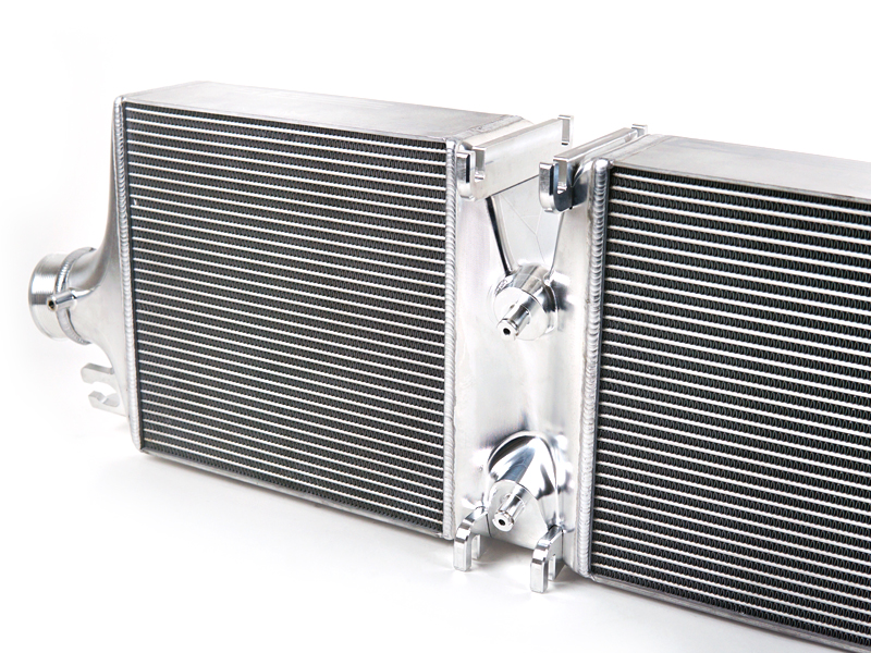 Nessuna roccia è stata tralasciata nella nostra ricerca delle massime prestazioni in una determinata sezione del sistema. Il punto di partenza sono i nuclei della rinomata Garrett Motorsport, questi sono incredibilmente ben realizzati con alette sottili e impilate, esattamente secondo le nostre specifiche nella pesatura del raffreddamento e del flusso d'aria. I serbatoi terminali sono realizzati in sottile fusione di alluminio per mantenere basso il peso e utilizzare comunque il flusso d'aria. Per accogliere il nucleo più spesso, sostituiamo le guide dell'aria con condotti in carbonio della migliore qualità.