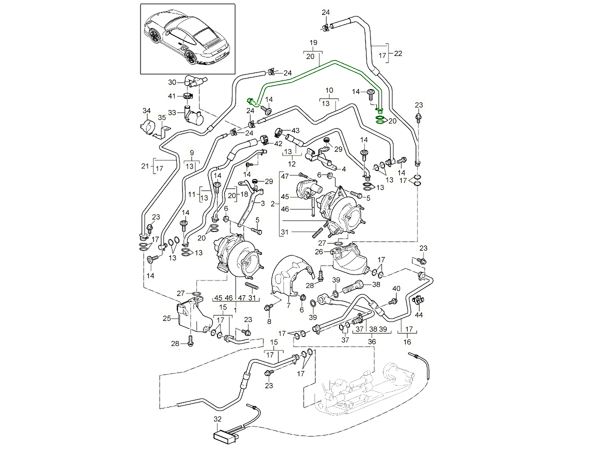 - Turbocompressori, intercooler e parti correlate per i modelli Porsche.