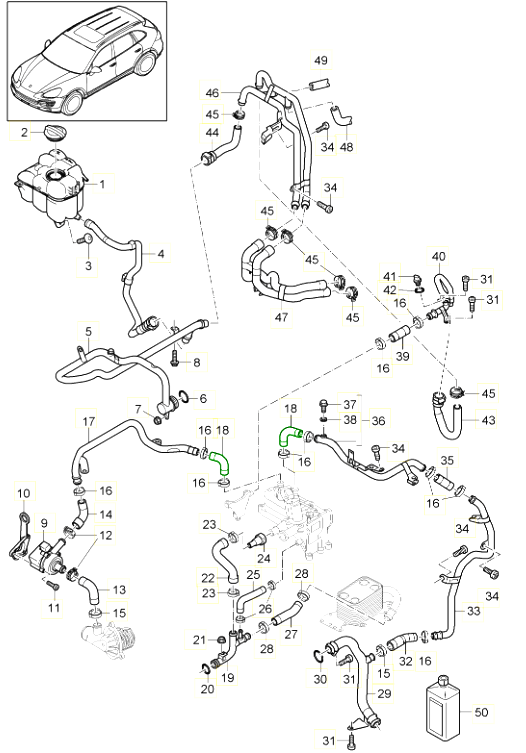 Raffreddamento ad acqua/Serbatoio dell'acqua (PR:D50,D1V) Cayenne 92A (958) 3.0L DIESEL >>2011 105-045