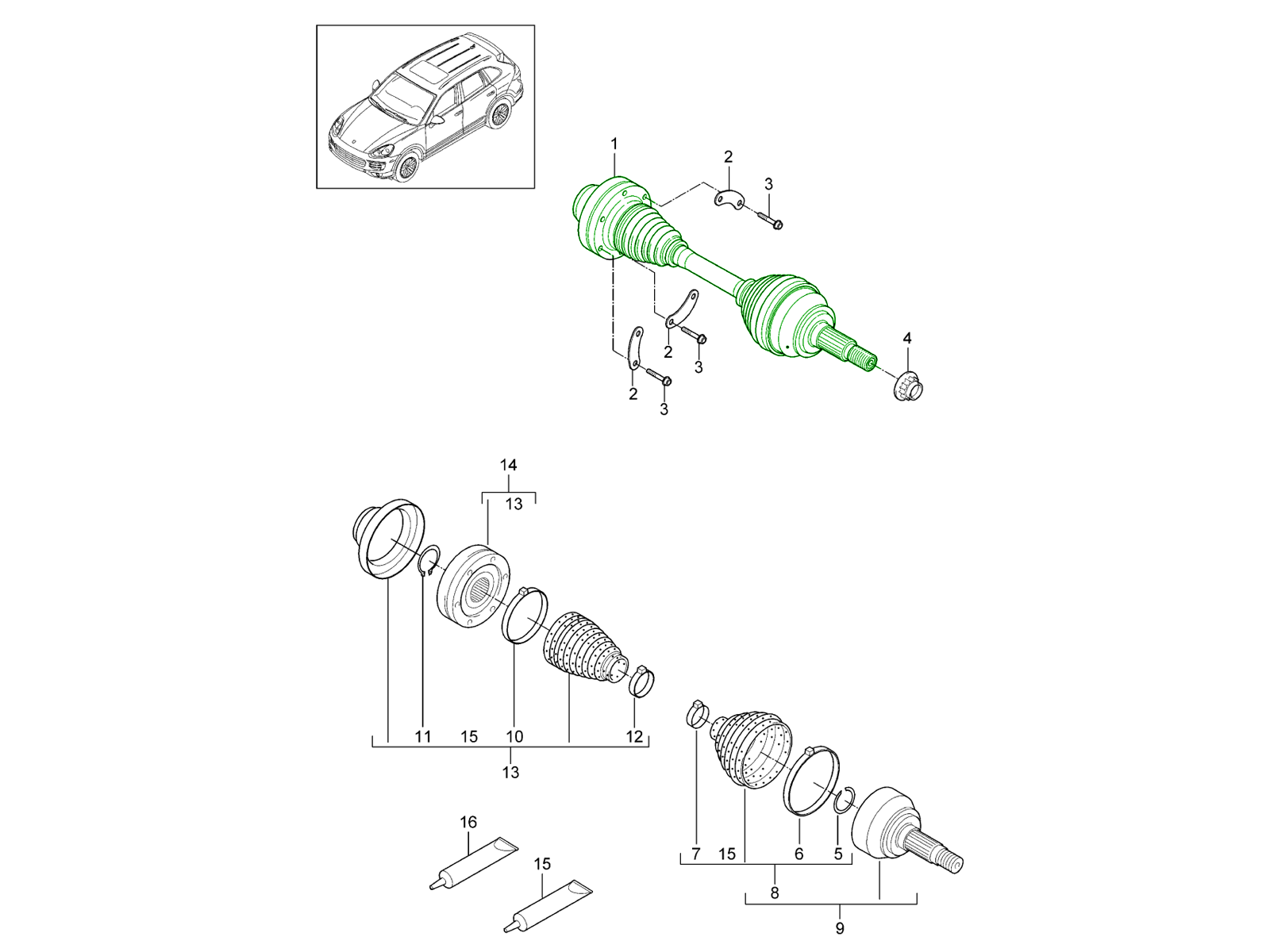 Albero di trasmissione originale Porsche (OE), noto anche come assale omocinetico (CV). È prodotto secondo le specifiche di fabbrica Porsche e viene utilizzato sui modelli Porsche Cayenne (generazione 958) come parte del sistema di trasmissione.