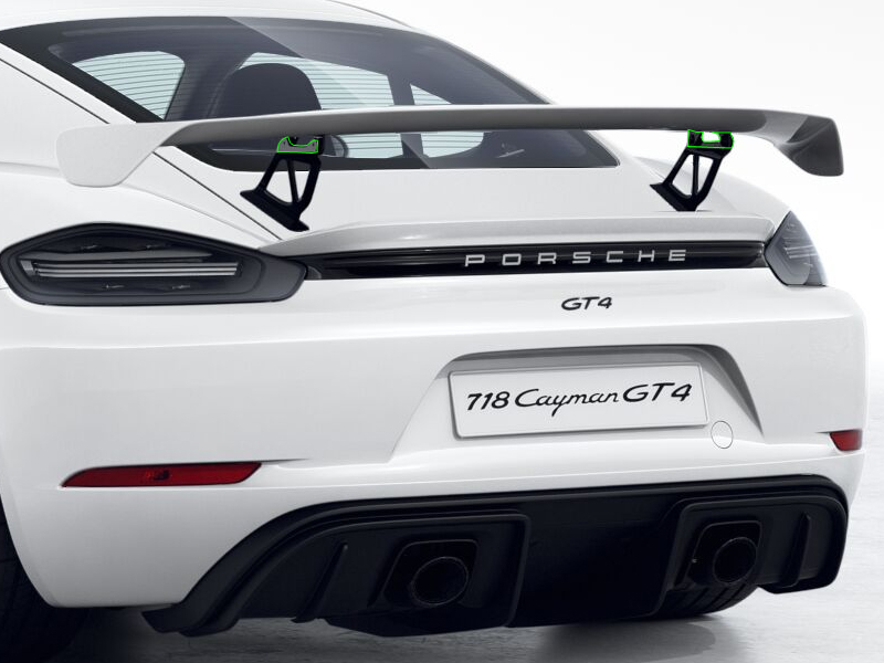 Quando la GT4RS funziona con impostazioni di angoli AOA ad alta deportanza su piste ad alta velocità, o quando si utilizzano ali motorsport ad alta deportanza, il rischio di ammaccature metalliche aumenta. Ad esempio, l'ala SilverRocket DRS-1 può generare oltre 250 kg di deportanza a una velocità di 200 MPH. Questa sostanziale deportanza è supportata dalla carrozzeria dell'auto tramite il supporto dell'ala.