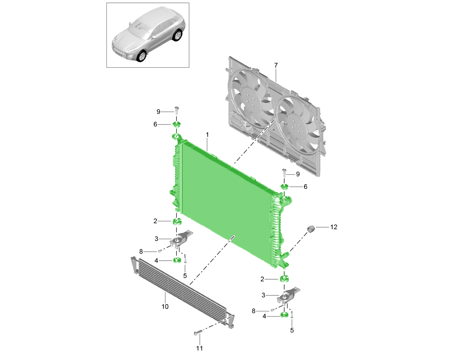 Supporto / Radiatore per liquido di raffreddamento / Guida dell'aria e blocco del supporto 95B.1 Macan 2014-18 802-010
