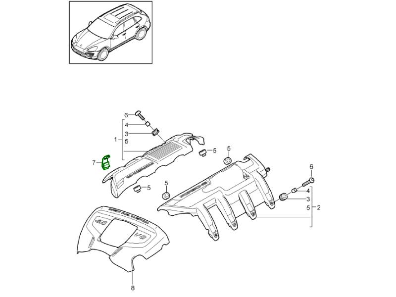 Elementi di fissaggio, bulloni e clip originali di fabbrica, realizzati secondo le specifiche Porsche per una perfetta aderenza e prestazioni affidabili a lungo termine.
