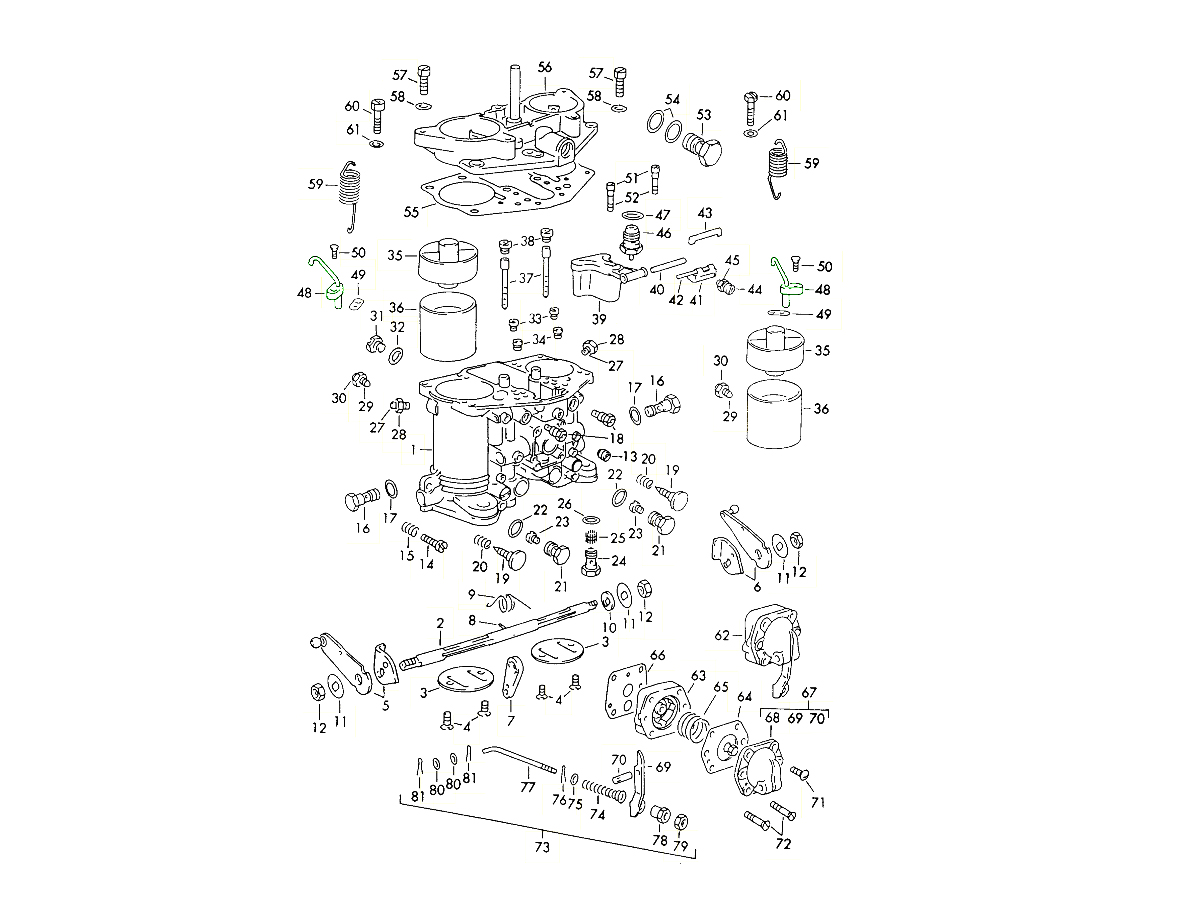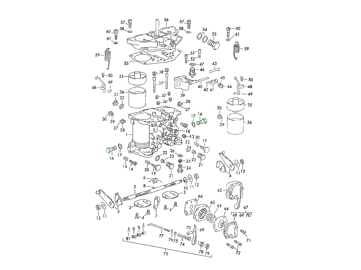 • Geschikt voor: Porsche 356 B/C en 912 met Solex 40 PII-4 carburateurs