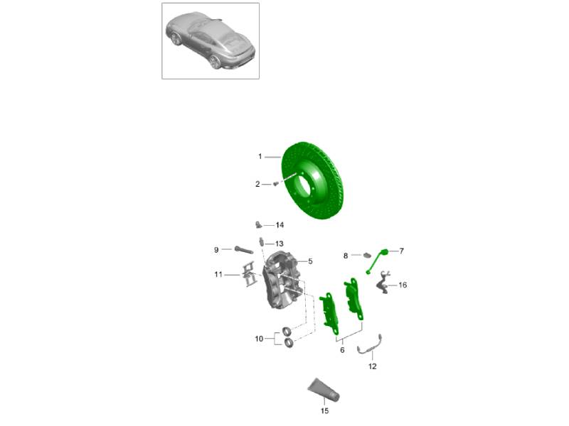 1ZB Voorremschijf, 18" schijfrem, remklauw groen geverfd, Noord-Amerika