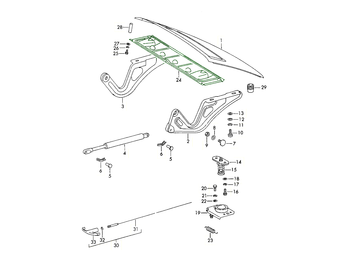 Porsche 911 (motorkap en motorklep) 2.0L-3.3L 01/1963-07/1989
