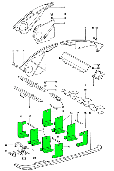- De getoonde diagrammen zijn van een 911 3.2L uit 1989. De plaatsing en aantallen kunnen per model enigszins variëren.