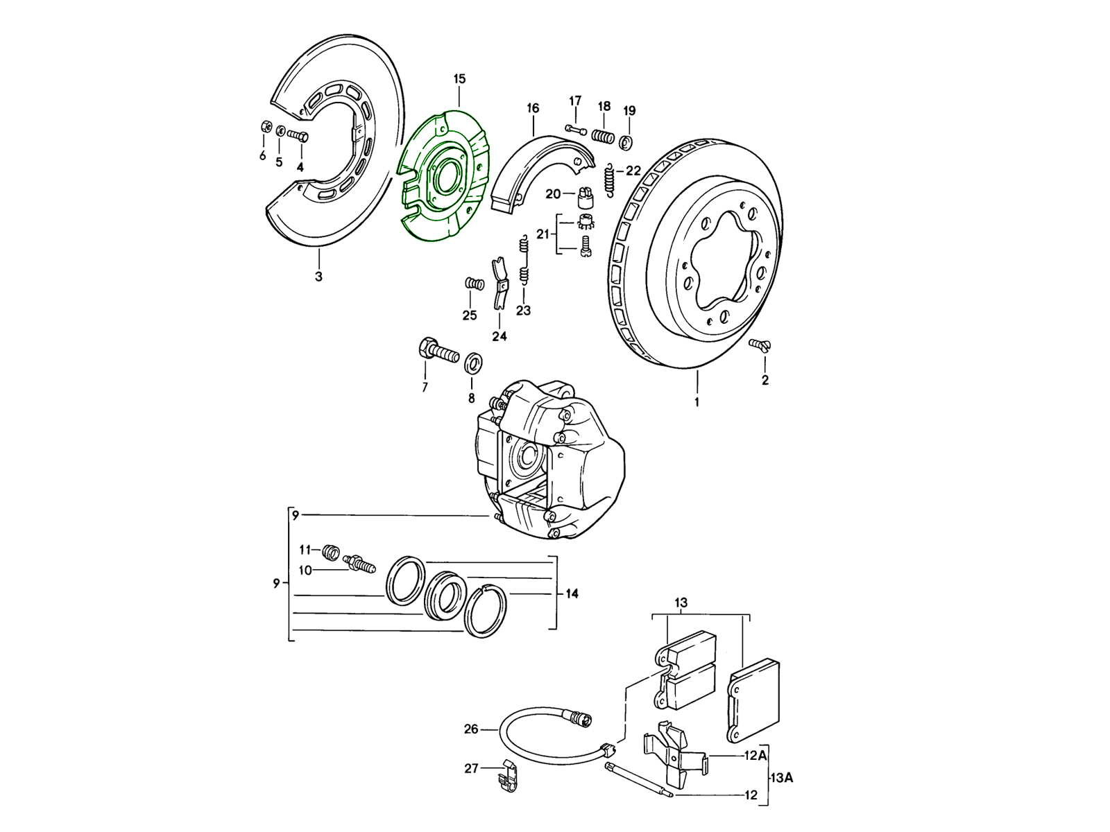Handremschoenen zorgen voor de wrijving die nodig is om uw Porsche stil te houden door tegen de remtrommel of -schijfnaaf te drukken.