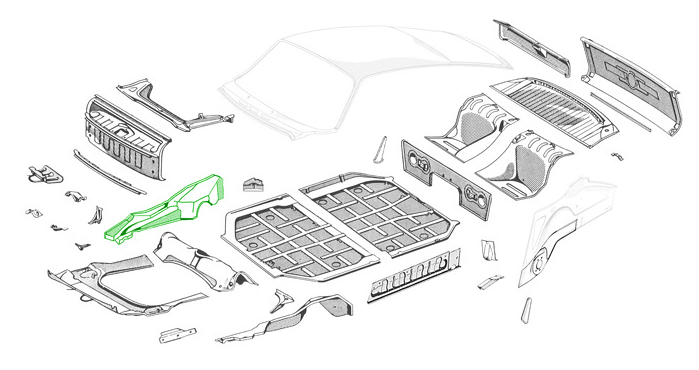 Nauwkeurige reproductie van schotten en voorste vloerpanelen, ontworpen voor duurzaamheid op de lange termijn en in lijn met de originele techniek van Porsche.