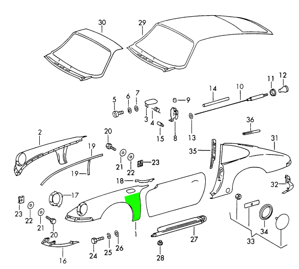 exterior panelling 911 COUPE 1965-69 801-30