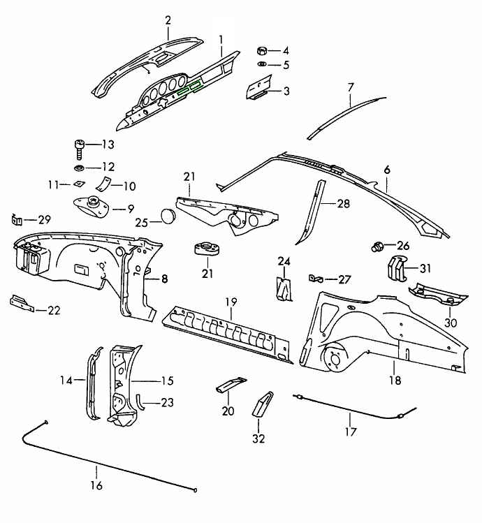 Past op nummer 1 op het diagram. Onderdeel groen gemarkeerd op diagram.