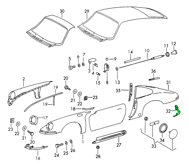Authentieke reproductiepanelen voor historische Porsche-modellen zoals de 356, 911 Classic, 912 en 964. Perfect voor restauraties op concoursniveau.