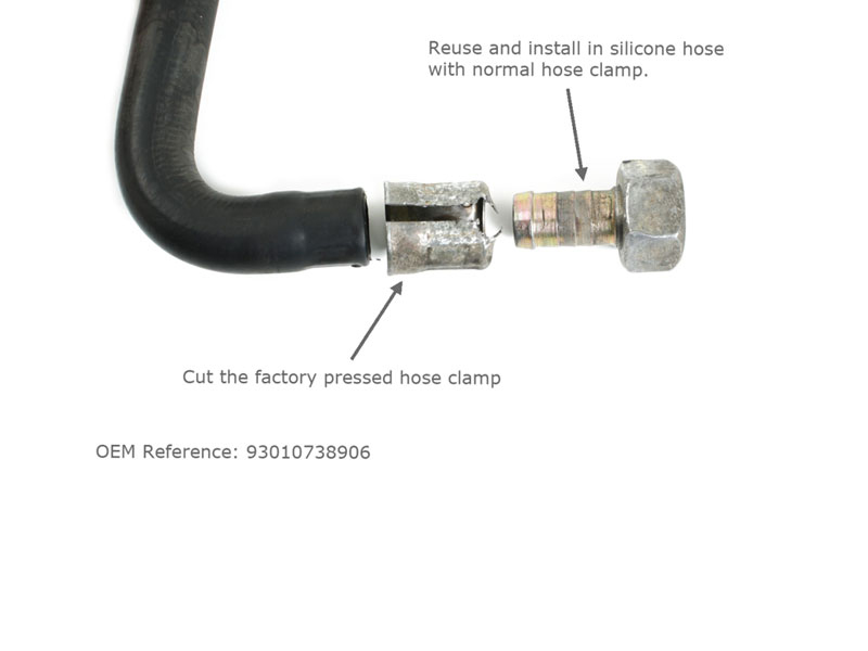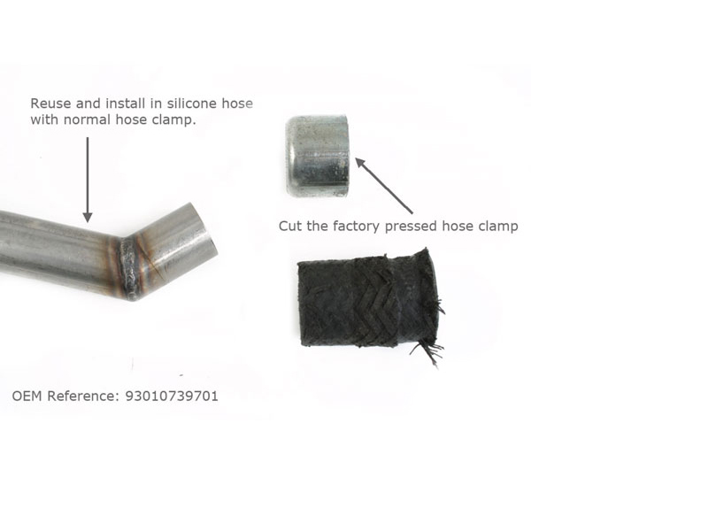 *** De in de fabriek geperste slangklemmen dienen op deze slangen te worden geknipt en de slangaansluiting en de stalen buis opnieuw te gebruiken. Ze worden met gewone slangklemmen op de nieuwe siliconenslangen gemonteerd. Zie grote afbeeldingen voor meer details ***