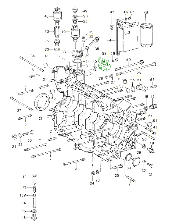 Het carter vormt de kern van elke Porsche-motor en huisvest belangrijke roterende componenten zoals de krukas, lagers en drijfstangen. Het zorgt voor structurele stijfheid, olieopvang en nauwkeurige uitlijning van de bewegende onderdelen van de motor – cruciaal voor zowel de prestaties als de levensduur.