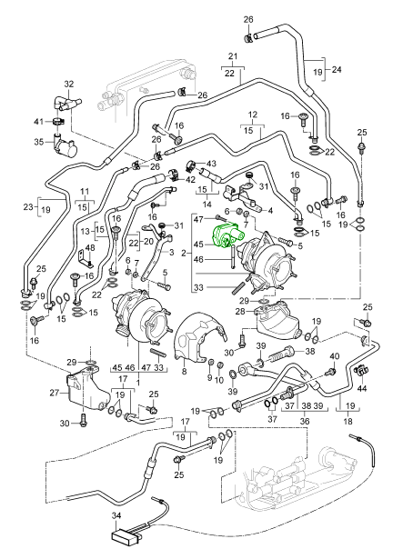 - Gerelateerde onderdelen : Turboslangen, kleppen, klemmen en koelleidingen zorgen voor een constante boostdruk en een betrouwbare luchtstroom.