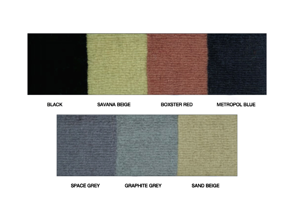 • Bekleed met tapijt van automobielkwaliteit, afgestemd op de interieurkleuren van Porsche.