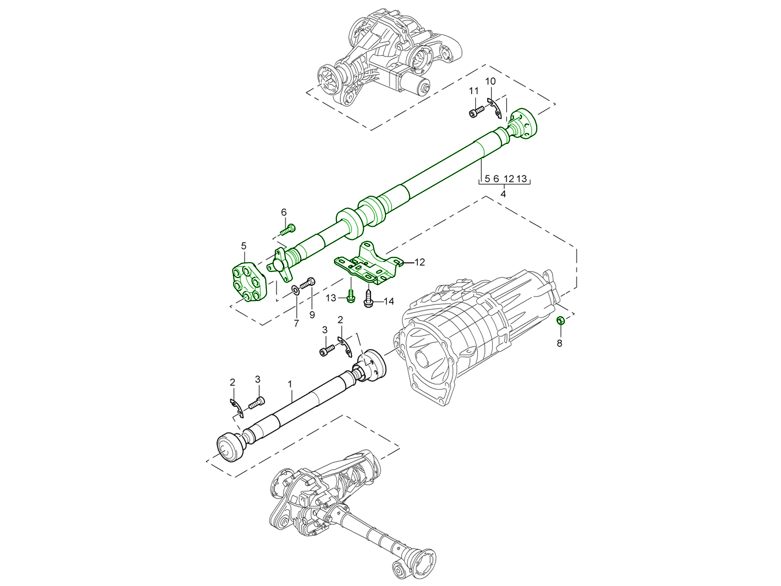 De cardanas (ook wel aandrijfas of aandrijfas genoemd) is een cruciaal onderdeel van de aandrijflijn dat het koppel van de transmissie van uw Porsche overbrengt naar het differentieel, wat zorgt voor een soepele en efficiënte vermogensafgifte aan de aangedreven wielen. Ontworpen om hoge rotatiekrachten te verwerken en een perfecte balans te behouden, speelt deze een cruciale rol in de stabiliteit, acceleratie en rijprecisie van de aandrijflijn.