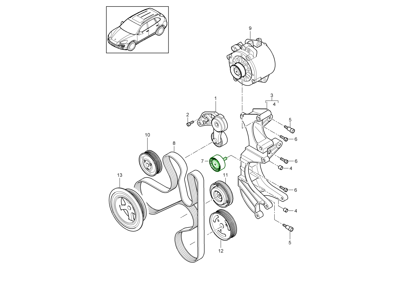 De originele Porsche spanrol wordt ook wel een multiriemgeleider of relaisrol genoemd. Deze spanrol speelt een cruciale rol bij het geleiden en op de juiste spanning houden van de multiriem die essentiële motoronderdelen zoals de dynamo, stuurbekrachtigingspomp, airconditioningcompressor en waterpomp aandrijft.