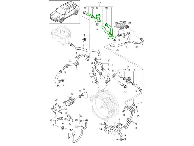 Koelvloeistofkoelsysteem / Koelvloeistofexpansietank (PR:D19,D11) Cayenne 92A (958) 3,0L benzine / 3,0L HYBRID 2011-18 105-060