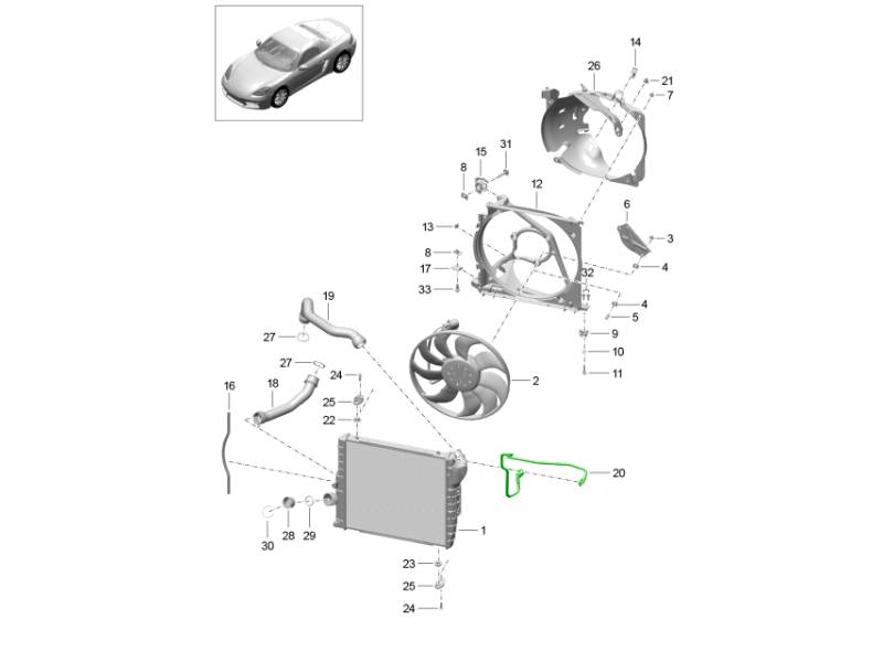 De bovenste en onderste slangen van de radiator zijn essentiële onderdelen van het koelsysteem van uw Porsche en zorgen voor het transport van koelvloeistof tussen de radiator en de motor. De bovenste slang transporteert hete koelvloeistof van de motor naar de radiator voor koeling, terwijl de onderste slang de gekoelde vloeistof terugvoert naar de motor. Zo blijven optimale bedrijfstemperaturen voor prestaties, efficiëntie en betrouwbaarheid behouden.