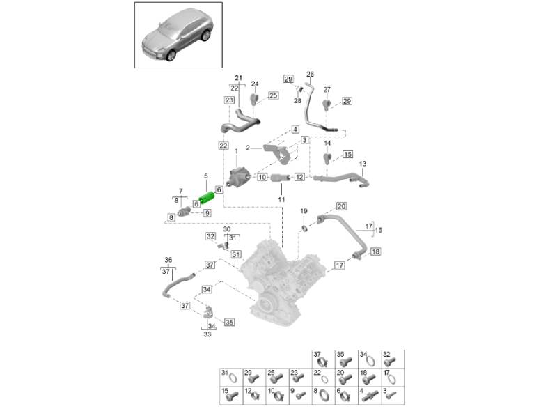 Koelvloeistofslangen in het motorblok zijn essentieel voor het handhaven van stabiele motortemperaturen en het voorkomen van oververhitting in het koelsysteem van de voorste motor van uw Porsche. Deze slangen laten koelvloeistof circuleren tussen het motorblok, de radiator en de kachelradiator, wat zorgt voor een consistente temperatuurregeling en efficiënte warmteafvoer — essentieel voor prestaties, betrouwbaarheid en een lange levensduur.