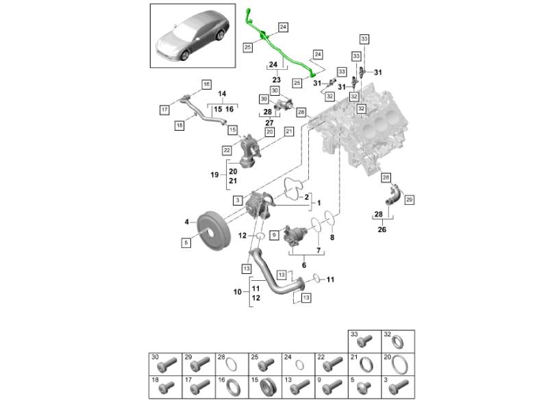 De koelvloeistofleiding is een origineel onderdeel van het koelsysteem, ontworpen om de koelvloeistof tussen belangrijke componenten van het koelcircuit te transporteren. Deze leiding maakt deel uit van het koelvloeistofcircuit van de radiateur naar de motor en zorgt voor een constante circulatie van de koelvloeistof, wat resulteert in een efficiënte warmteafvoer en stabiele motortemperaturen. De leiding biedt een nauwkeurige pasvorm, een veilige afdichting en een hoge weerstand tegen hitte en druk. Deze koelvloeistofleiding is speciaal ontworpen voor Porsche Panamera (971) modellen en draagt bij aan betrouwbare prestaties van het koelsysteem en een lange levensduur.