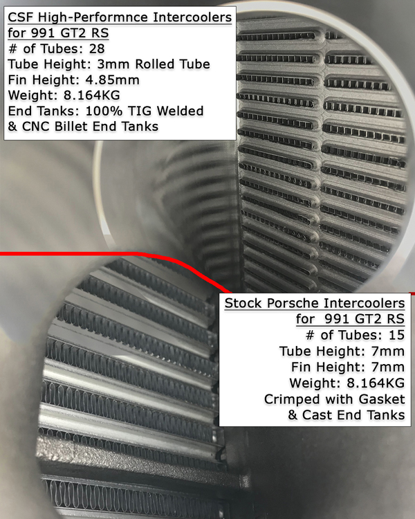 De intercoolers van CSF voor de Porsche 991 Turbo zijn getest in races, geregistreerd en volledig gevalideerd door enkele van 's werelds beste Porsche-tuners. Deze intercoolers worden beschouwd als dé optie voor de beste prestaties en waarde die beschikbaar zijn in de aftermarket.