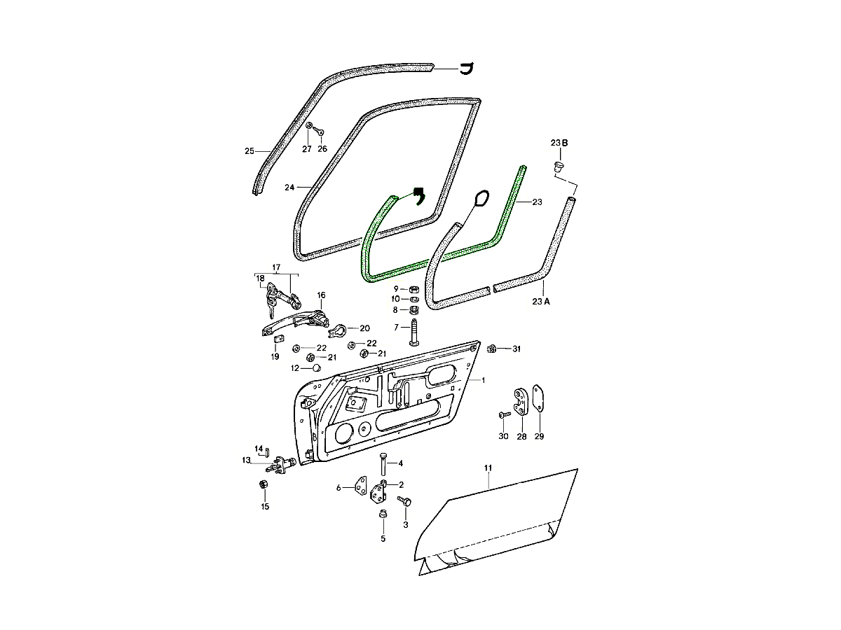 This door weatherstrip seal is engineered to meet the original Porsche specification for the door openings of Porsche 911 (1966-94) Targa and Cabriolet models.