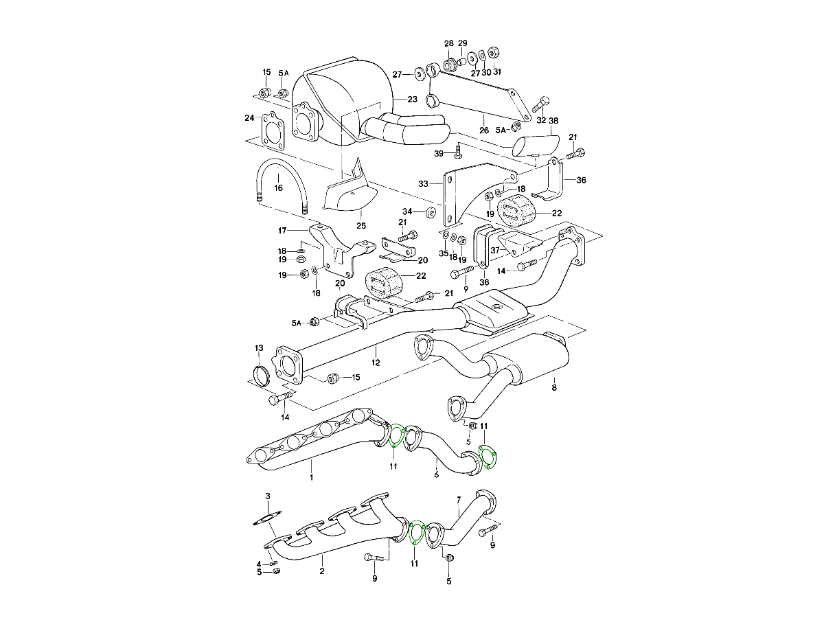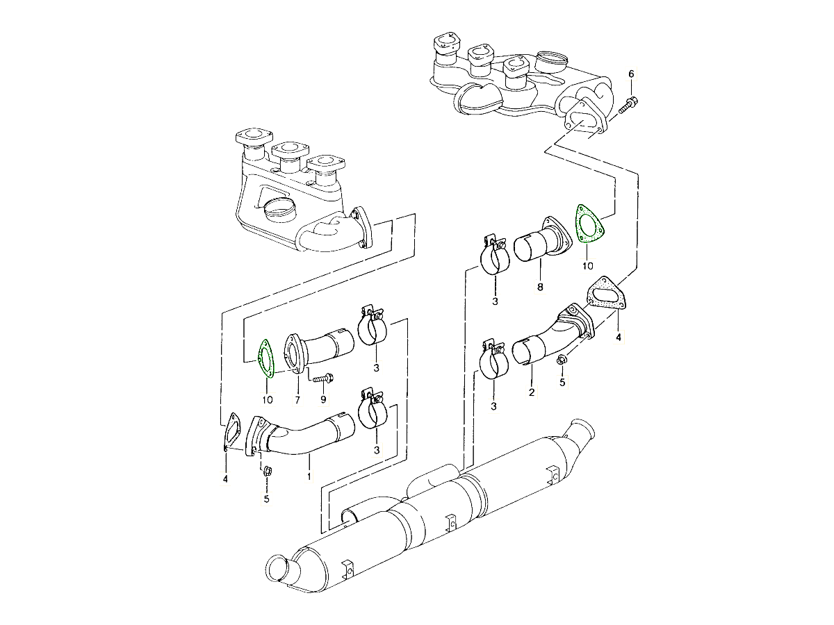 * Manifold to down pipes (diagram ref no 11) or down pipes to rear silencer (diagram ref no 11)