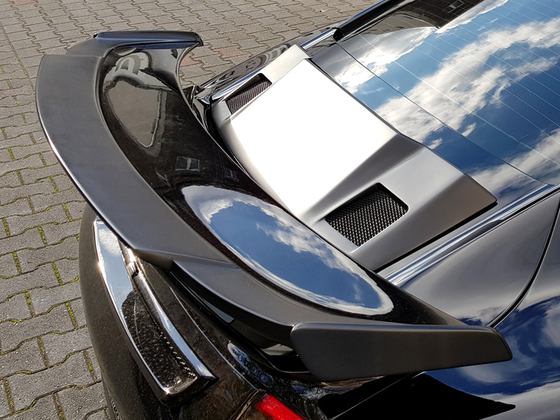 Our 991 Turbo rear spoiler extension ensures the highest possible downforce. The original height adjustment and lowering are of course unchanged. The Porsche active aerodynamic rear spoiler functional capability stays and is not impaired.