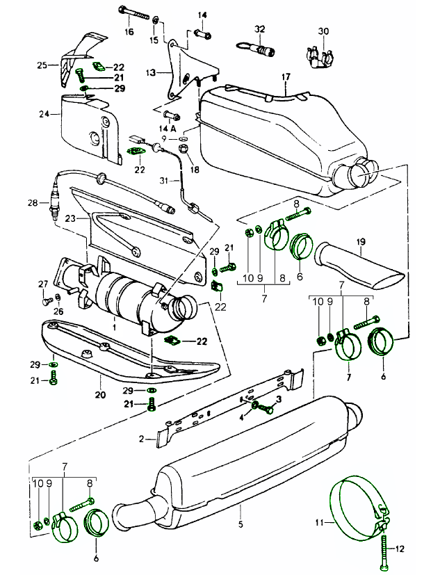 3 x Exhaust clamp for tail pipe. Porsche 964 (96411133600/1